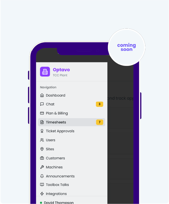 Optavo Timesheets is a web and mobile timesheets platform built for plant hire & construction companies, designed to replace paper with a simple clock-in/out, pre-start checks, and weekly sign-off workflow. It keeps sites compliant, speeds up approvals, and produces clean data ready for invoicing and payroll.